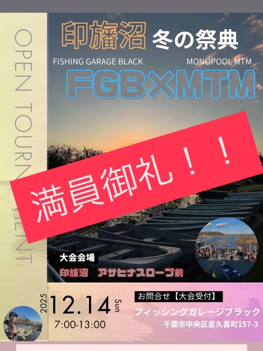 FGB×MTM印旛沼おかげさまで定員に達しましたので受付終了とさせていただきます‼️🙇