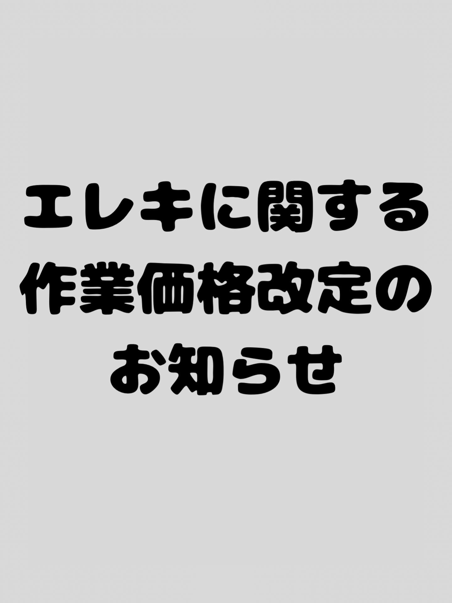 仕入れ部材の急激な価格高騰に伴い、現行価格の維持が困難となりました。誠に恐縮ではございますが、明日よりエレキ作業関連一部のメニューについて価格を改定させていただきます。