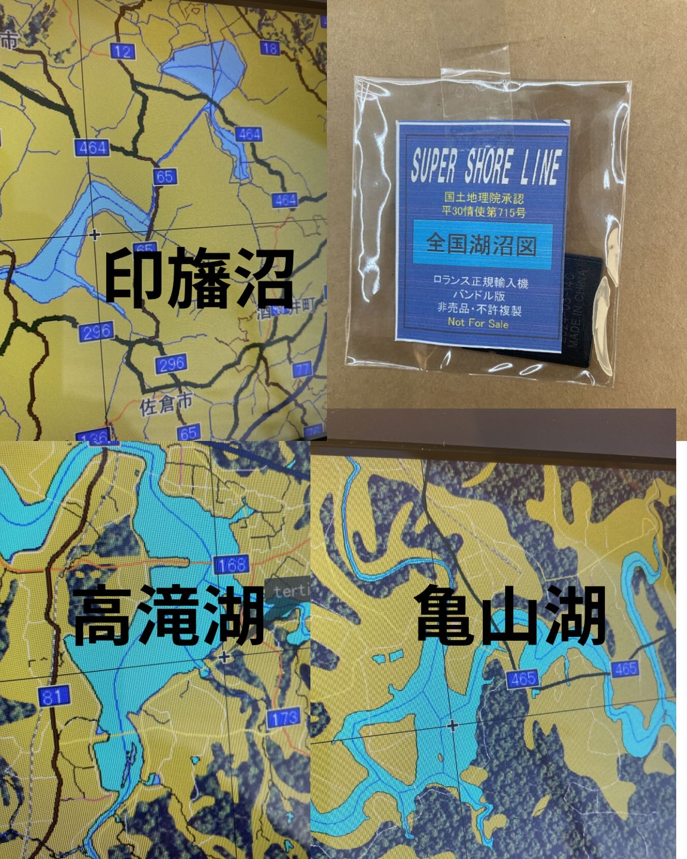 当店からも近い、印旛沼、高滝湖、亀山湖等もご覧の通りしっかりと湖の形状を確認できます。